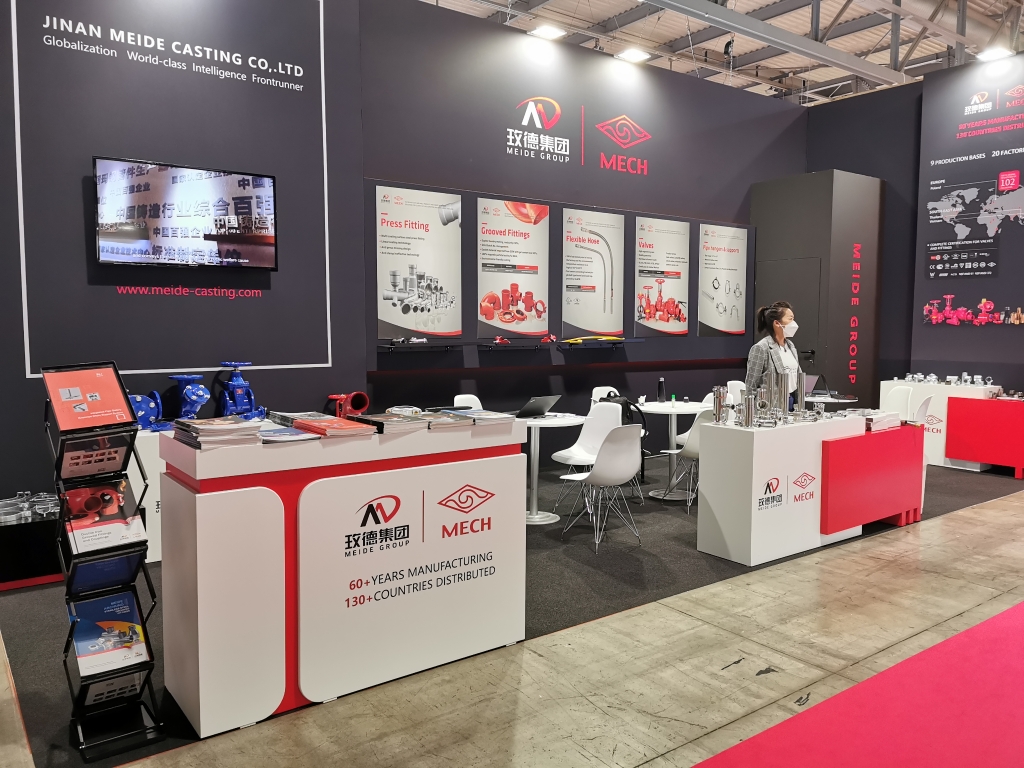 2022年06月28日-7月1日,意大利米兰暖通制冷及智能家居及卫浴展览会(MCE)在意大利国际展览中心成功举办。此次展会,玫德集团搭建了两个展位,集团展位与成员企业波兰EE公司展位,展出全系列产品,包括沟槽管件、玛钢管件、阀门、卡压管件、钢管、支吊架等,在消防、水务、燃气、热力等领域,向海外客户展示了一站式解决方案,玫德致力于为客户提供产品与方案的定制化服务,全方位展现玫德硬实力和软文化。