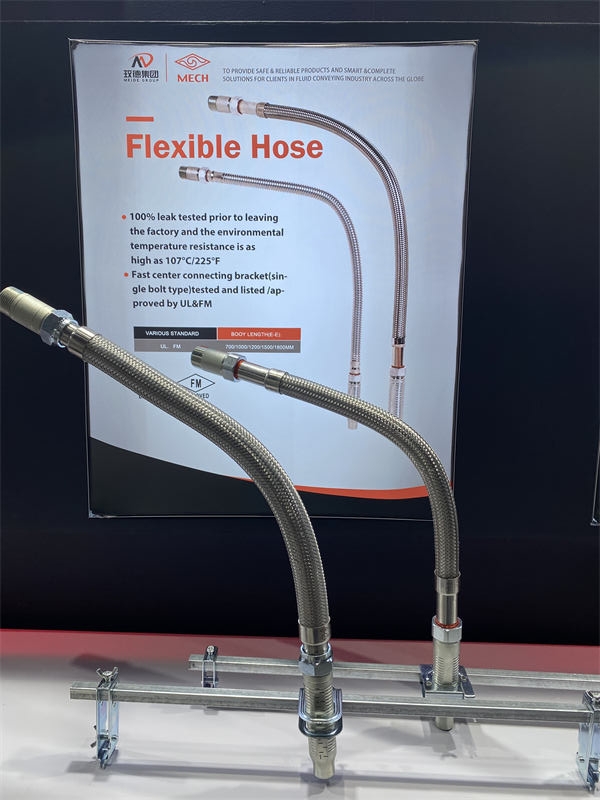 消防金属软管专业名称为消防洒水软管,主体材质不锈钢,包含不锈钢软管(即波纹管)和安装组件,用于自动喷淋系统中喷淋头与主管的连接,代替传统硬管。玫德艾瓦兹消防软管具备独特优势: