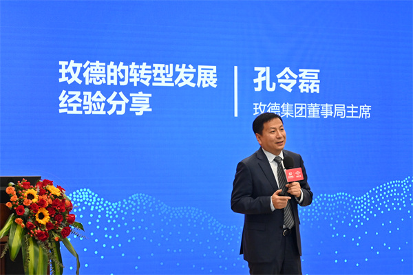 玫德集团董事局主席孔令磊分享了玫德的转型发展经验,会上,他介绍了“玫德近十几年的发展概览、四个转型的提出与实施、创新变革是永续经营的动力、未来发展的观点”,从四个方面阐述了玫德的转型发展经验与创新之路,强调了数字化转型与创新的重要性。