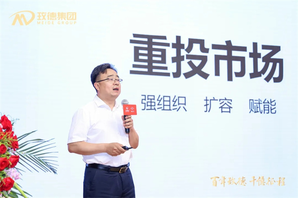玫德集团党委书记、董事局副主席郭雷发表了题为《转型赋能齐发力 千亿征程共辉煌》的专题报告,从“强组织、扩容、赋能、策略支持”四个方面表述了玫德将重投市场,以更加丰富的产品和解决方案,更加强大的组织和团队,更大力度的政策和资源,与全国合作伙伴齐手并进,共赴千亿,共铸新辉煌!