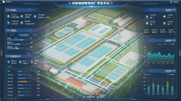 建立水厂全要素、全过程和全周期的数据底板,保障水厂运行数据的实时性、准确性和可靠性。建立供水专题模型,通过水量、水质等实时数据对模型进行修正调整,通过历史数据对模型不断验证,实现水厂加药智能化,降低出水水质不达标风险的同时减少药耗。建立业务规则、预警规则、历史数据、应急预案等知识库,为供水安全提供科学依据和技术支持,实现对水厂运行状态的实时监测和预警。