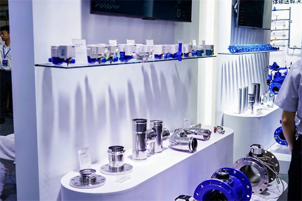 玫德集团展示了涵盖智慧供水、高效排水、管网监测等环节的全场景解决方案,带来大口径钢管柔性连接技术、水厂一站式解决方案、城市管网一站式解决方案,以及各类水表、不锈钢管材管件、直缝钢管、阀门、玛钢管件、沟槽管件等,吸引了众多与会嘉宾驻足交流。