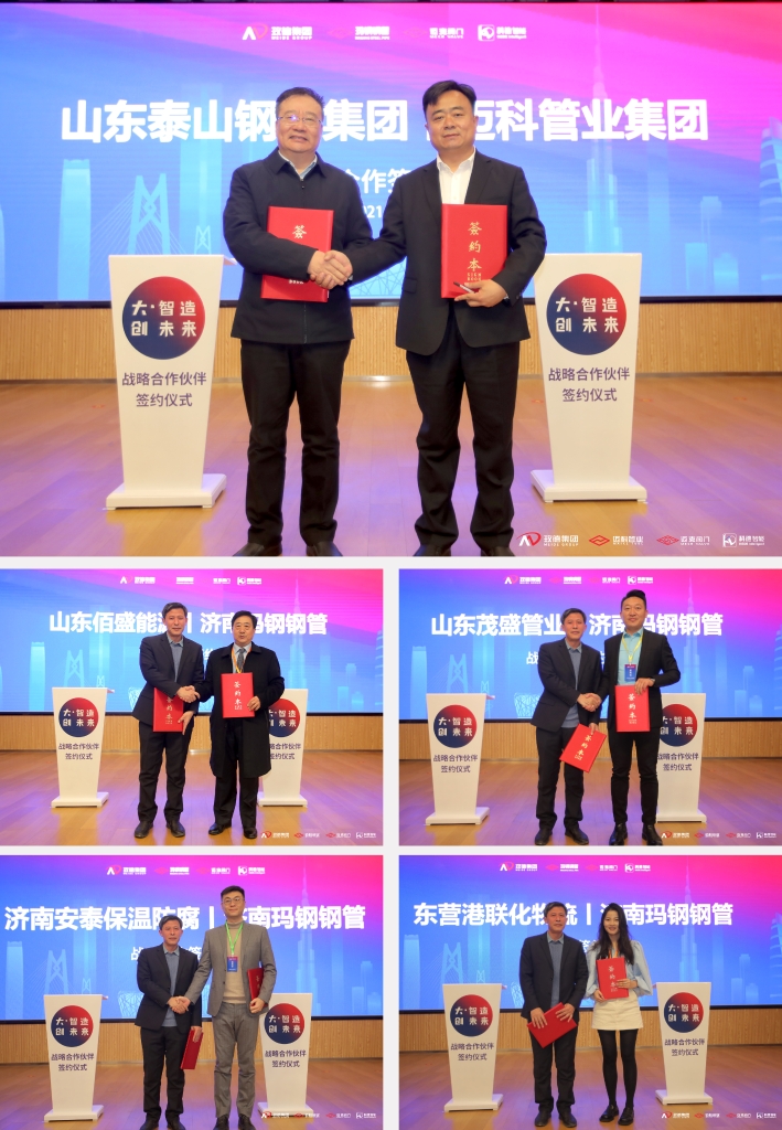 迈科管业与山东泰山钢铁集团有限公司、山东佰盛能源科技有限公司、山东茂盛管业有限公司、济南安泰保温防腐有限公司、东营河口区港联化物流有限公司分别签订了战略合作伙伴协议。