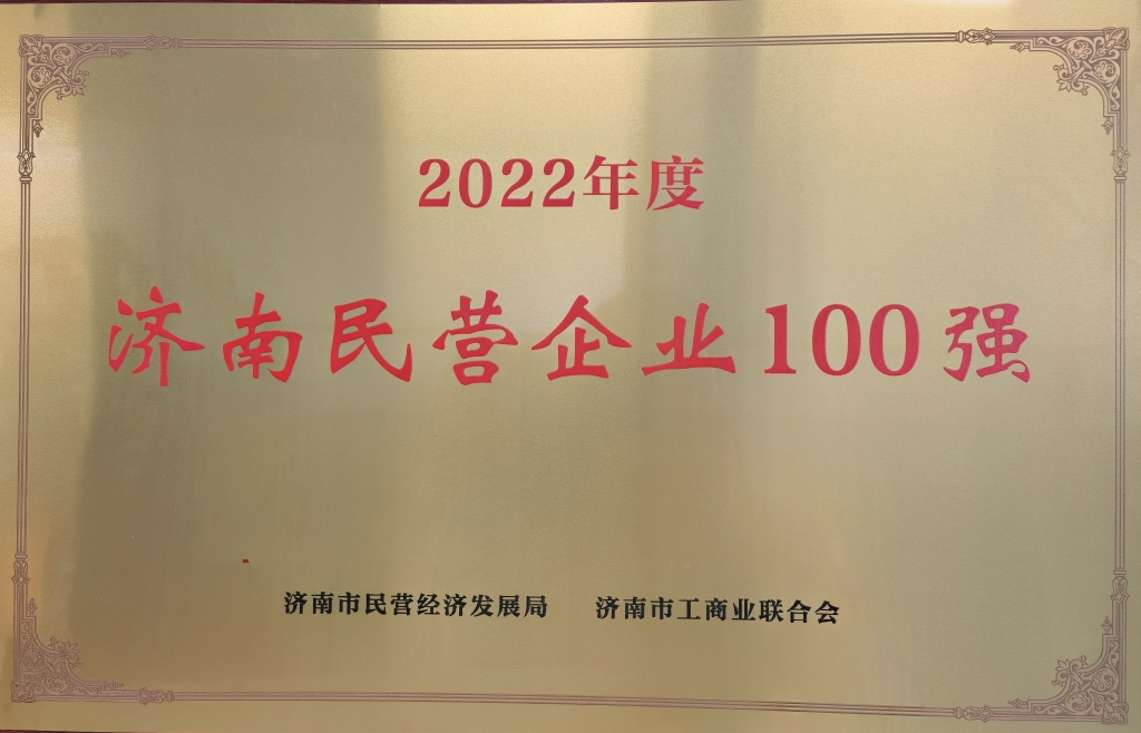 玫德集团有限公司荣获“2022年度济南民营企业100强”和“2022年度智能制造与高端装备业十强民营企业”荣誉称号。