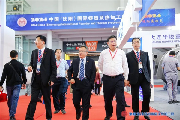 本届展会吸引了众多世界知名专家、学者、企业家参加,共同推动国内外“政、产、学、研、金、媒、用”等资源与铸造及装备制造业生态深度融合。开幕式后,工业和信息化部装备工业一司副司长汪宏及中国机械联合会副会长、中国铸造协会会长张立波一行莅临玫德集团展位参观指导。