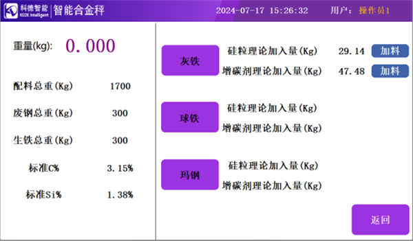 FSY-XX-TC型智能合金秤针对铸造行业电炉熔炼辅料加入场景打造的一款工业级计量产品,集成CPU和HMI系统于一体,通过光谱检测数据和材质标准并与智铸云平台、智铸云易享版APP、熔炼云小程序等集成,精确计算合金辅料补加量,实现合金加入量数据统计、分析与查询。