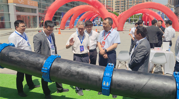原甘肃省水利厅一级巡视员、甘肃省水利学会理事长吴天临参观玫德集团自主研发的大口径钢管柔性连接技术